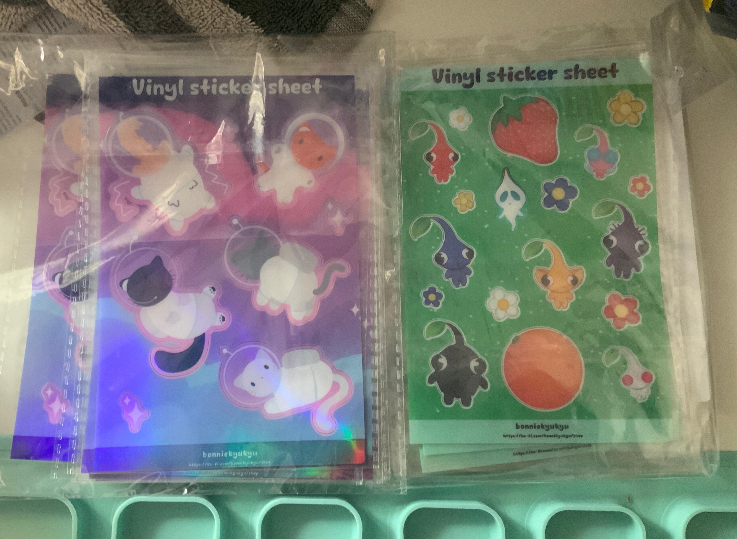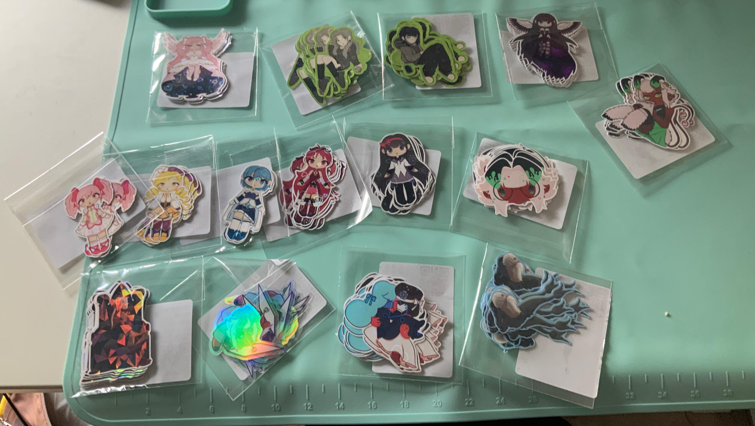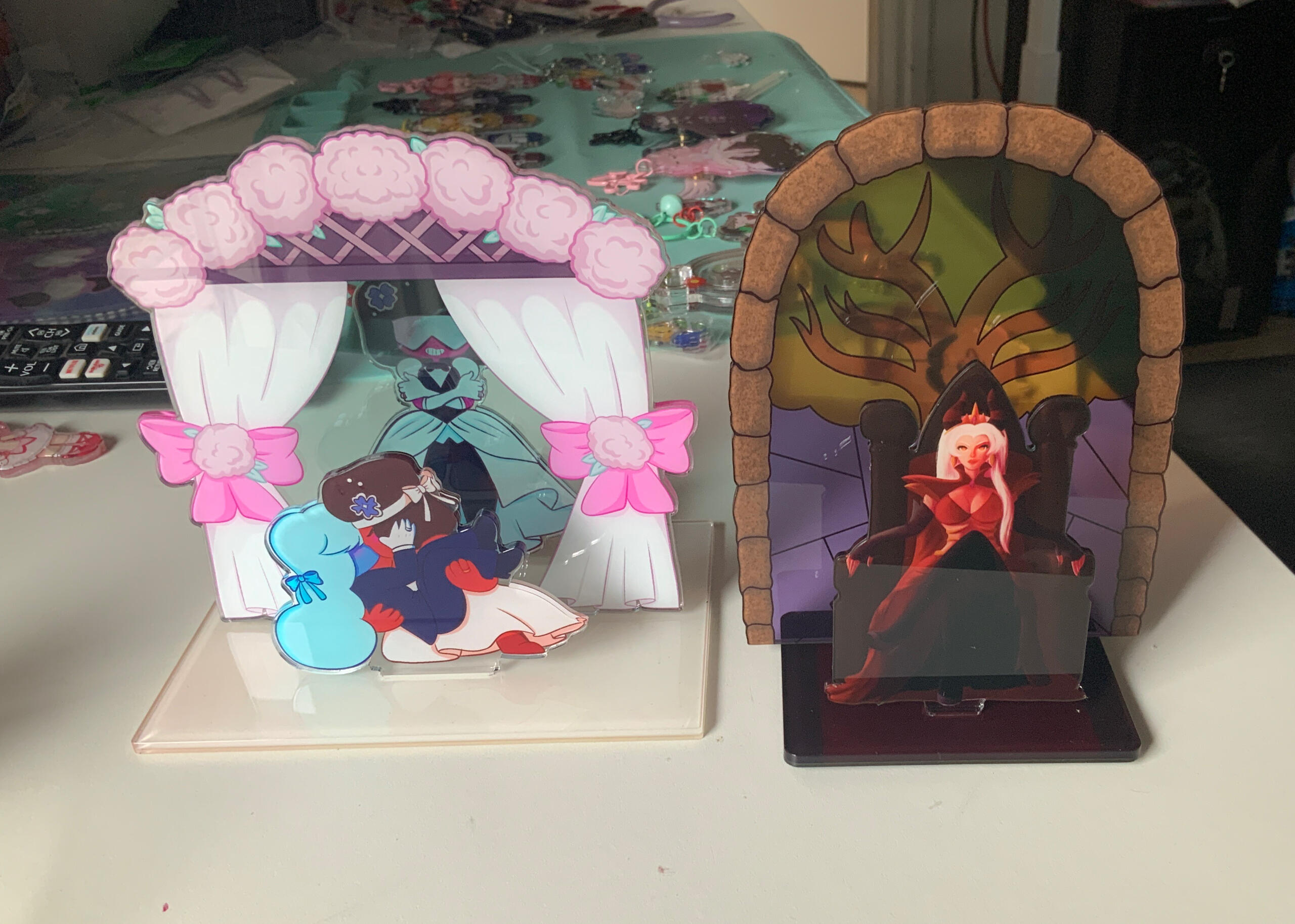 here you'll see all the art i've made to turn into physical products; like keychains, stickers, buttons, pins, postcards, acrylic stands and more! <3